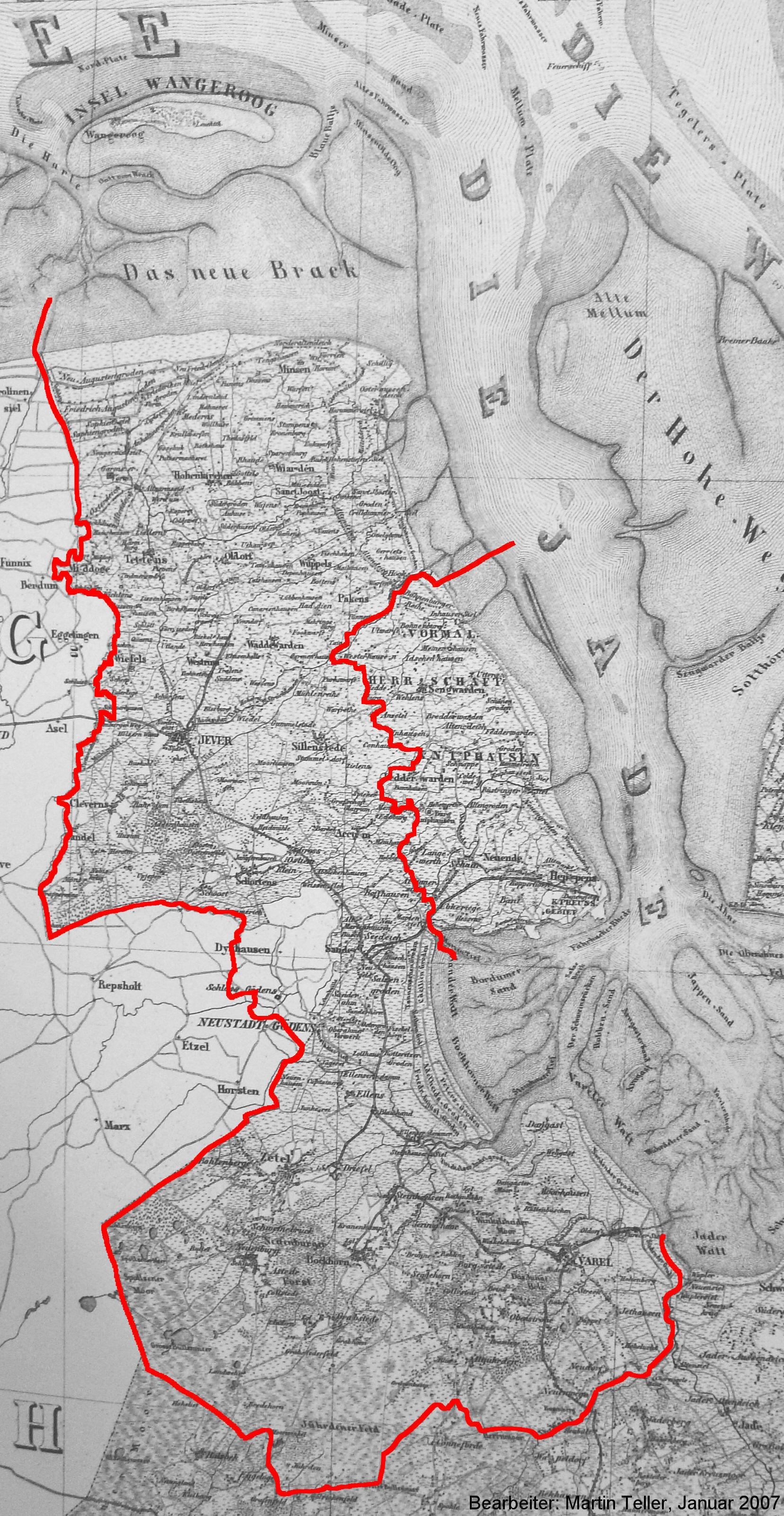 Südwestspitze im Nordwesten bis zu den Städten Jever und Schortens